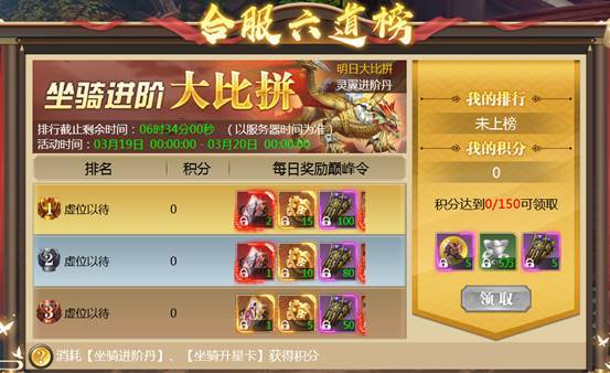 【活动内容】合服后排行榜大比拼,消耗进阶丹,升星卡可以获得积分,截止时间按照积分排名领取奖励