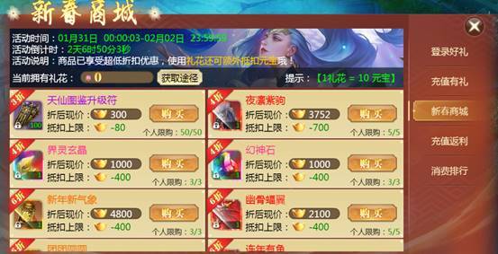 活动期间将开放特惠折扣商城,大量珍贵商品享受超高折扣优惠,使用果实还可额外抵扣元宝!珍稀材料、炫酷神兵、稀有气泡等贵重商品限时出售!